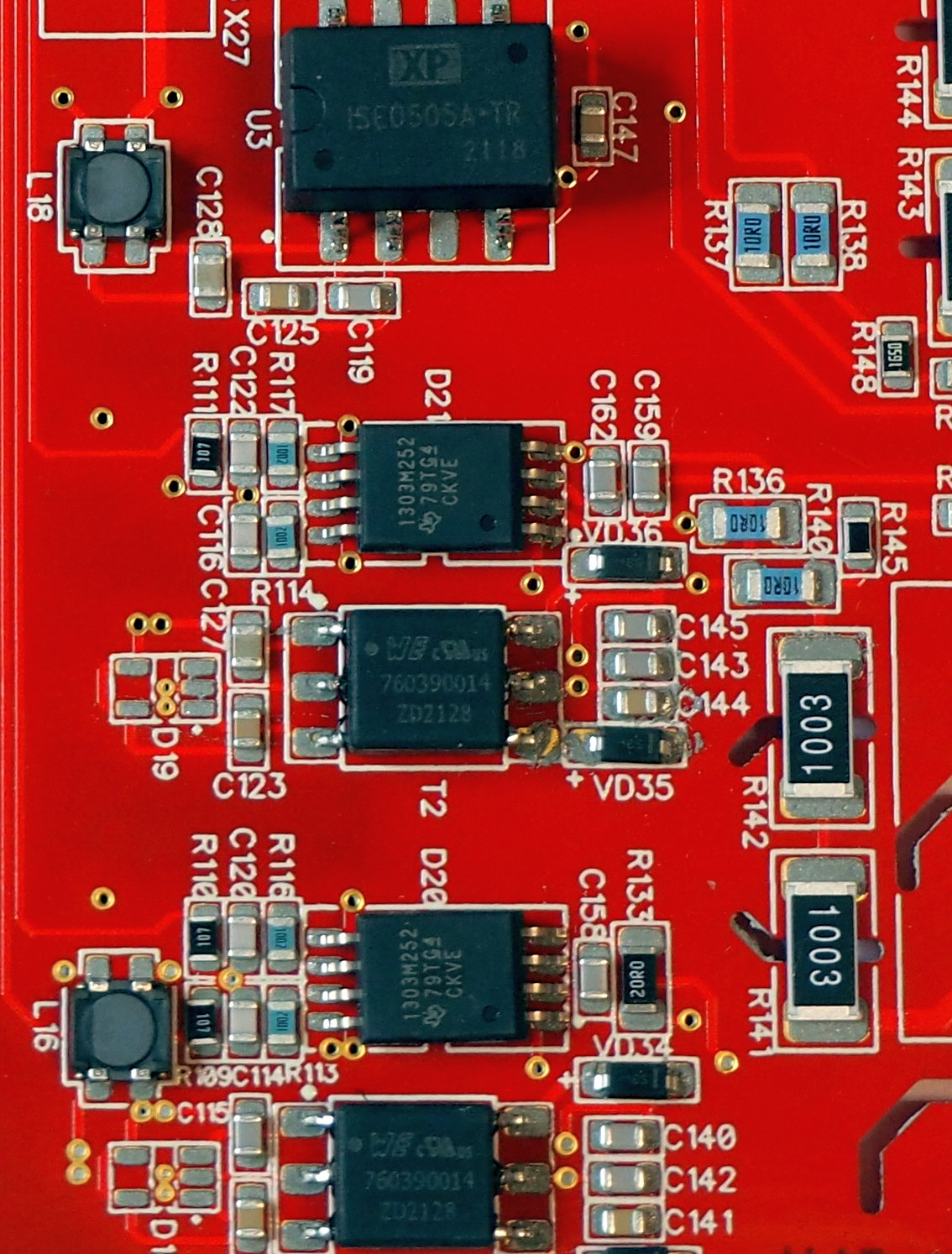 Kretskorten på bilderna (till vänster) är före ugn. Där kan man